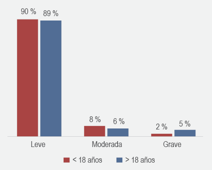 Al interrogar a los médicos sobre la edad de los pacientes con DA que atienden y la gravedad de su enfermedad, refirieron que 90 % de los menores de 18 años presentaba DA leve, 8 % moderada y 2 % grave. Este panorama cambiaba en los pacientes mayores de 18 años: 89 % DA leve, 6 % DA moderada y 5 % DA grave.