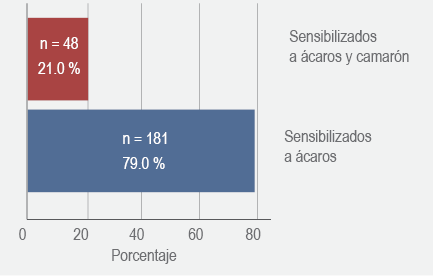 Aunque la reactividad cruzada entre proteínas de camarón y ácaros ha sido ampliamente estudiada, existen pocos datos que muestren la frecuencia de la cosensibilización ácaros-camarón en la población con síntomas respiratorios; la mayoría de los análisis epidemiológicos no han evaluado la importancia clínica de dicha sensibilización.