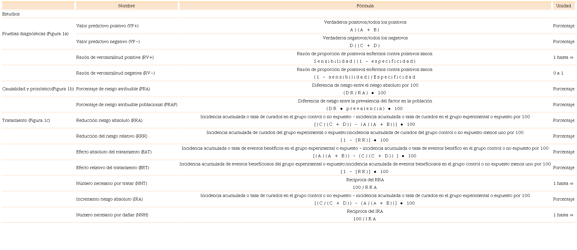 Palabras clave: Medidas de riesgo, Medidas de asociación, Medidas de impacto, Medicina basada en evidencias.