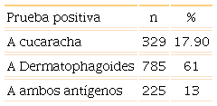 En el presente estudio se encontró que 68.3 % de los pacientes alérgicos a la cucaracha presentó también sensibilización a los ácaros del polvo casero; sin embargo, no todos los pacientes alérgicos al antígeno de cucaracha eran positivos al antígeno de ácaros.
