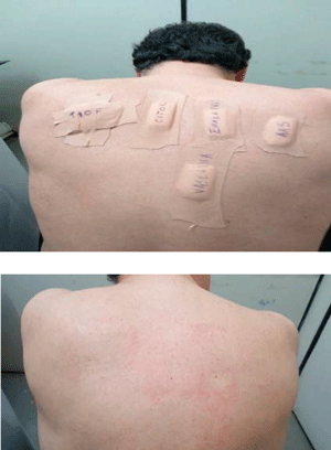 En algunos pacientes en quienes se prueban betabloqueadores de uso oftálmico que han ocasionado dermatitis en párpados se pueden observar resultados negativos con la prueba del parche, debido a que la piel en esa zona tiene mayor penetrabilidad que la del dorso, donde por lo general se aplican los parches cutáneos.12,13 Ello explicaría los resultados negativos iniciales.