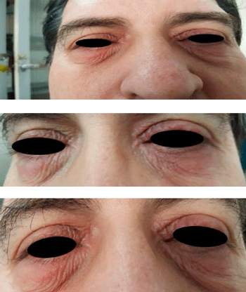 Hombre de 37 años de edad con diagnóstico dos años atrás de glaucoma primario de ángulo abierto bilateral, en terapia con dorzolamida y un agente betabloqueador adrenérgico tópico (timolol) en gotas, dos veces al día. En agosto de 2019 consultó por hiperemia conjuntival, escozor e inflamación de párpados de ambos ojos, seguidos de dermatitis eritematosa, que mejoraba al suspender el tratamiento. Estos episodios se repetían cuando utilizaba el fármaco.