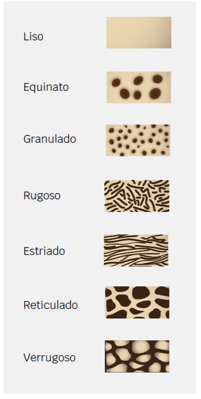 La exina puede ser lisa “psilada” con granulaciones, aspecto cerebroide u ondulada o “reticulada” (en forma de retículo). Las paredes del retículo se llaman muri y los espacios entre ellos, lumina.24