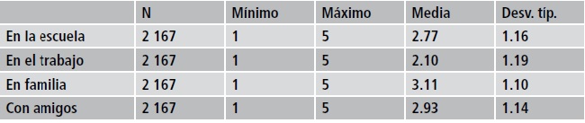 Como primera fase del estudio, se evaluó los hábitos de comunicación de los jóvenes; para ello, se comparó el lugar donde hablan normalmente sobre política, lo que se observa en la Tabla 1, donde la familia se constituye como un agente importante en las reflexiones que realizan los jóvenes sobre política. En este sentido, la familia no solamente provee recursos, sino también puede generar un modelo de acción para conformarlos políticamente. Además, puede señalarse que en la familia se crea un modelo básico de socialización política, y esto a su vez puede generar un alto nivel de identificación partidista.