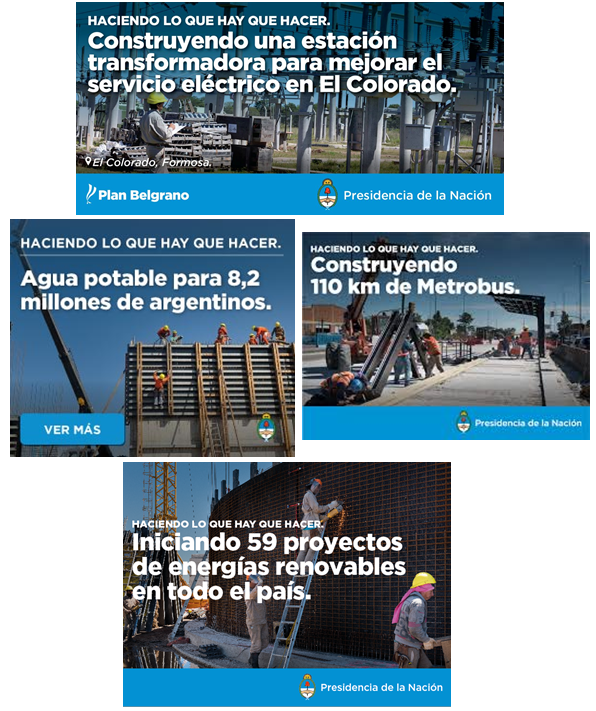 Uno de los eslóganes de campaña y de gobierno más célebres de la gestión macrista es “Haciendo lo que hay que hacer”,36 plasmado en numerosos spots y afiches:
