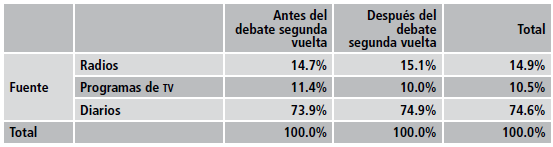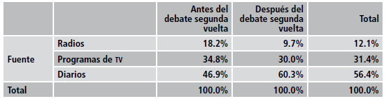 Como el debate en segunda vuelta39 es el hecho que marca esta investigación, se priorizó la observación del proceso antes y después de las fechas de su realización. El rango de recojo establecido fue el mismo: siete días antes y después del evento.