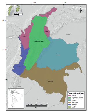 Ubicación geográfica de las áreas hidrográficas de Colombia