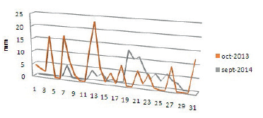 Variación pluviométrica de los meses de octubre de 2013 y septiembre de 2014.