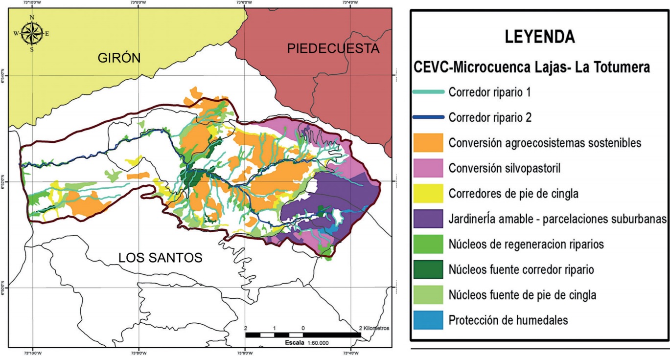 La recuperación de los procesos ecológicos como el ciclo hidrológico y la regeneración así como la viabilidad socioeconómica de los tratamientos reposan principalmente en la pertinencia y el ordenamiento de las intervenciones en la escala micro, al interior de cada predio y dentro de la lógica espacial y funcional de cada sistema de alteridad: finca campesina, parcelación, avícola, etc.