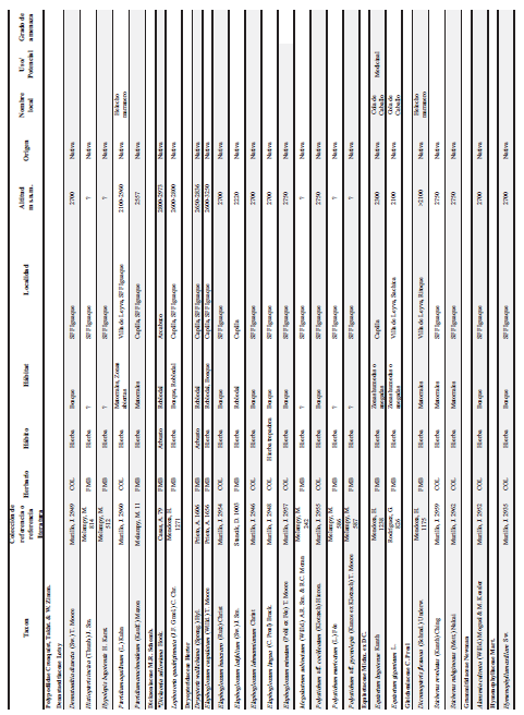 - Elevación. En caso de encontrarse un solo registro de elevación pero donde se conoce que la especie se encuentra en otros rangos se colocó el signo “> - mayor que”.
