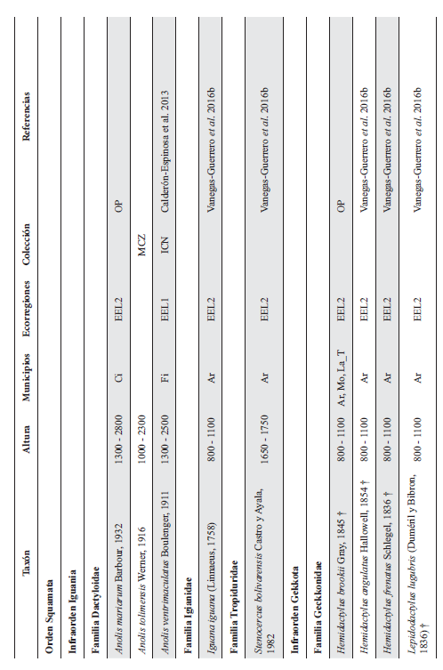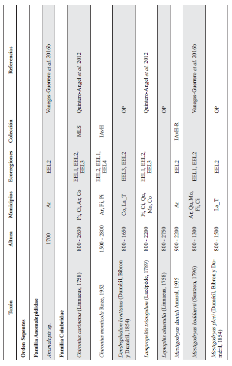 Citación del artículo: Román-Palacios, C., S. Fernández -Garzón, A. Valencia-Zuleta, A. F. Jaramillo-Martínez y R. A. Viáfara-Vega. 2017. Lista anotada de la herpetofauna del departamento del Quindío, Colombia. Biota Colombiana 18 (1): 251-281