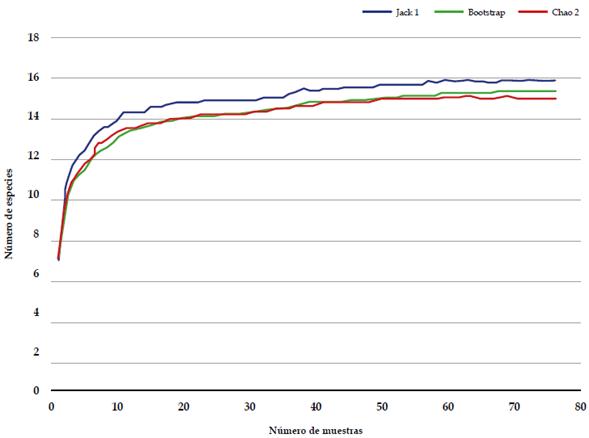 Analizamos 16438 individuos (7517 larvas y 8921 juveniles y adultos) que correspondieron a 15 especies pertenecientes a 6 géneros (Euphausia, Stylocheiron, Nematoscelis, Nematobrachion, Thysanopoda y Nyctiphanes). El esfuerzo de muestreo fue suficiente para representar adecuadamente la riqueza específica de los eufáusidos de la cuenca Pacífica colombiana (Figura 2).
