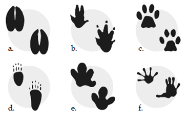 2. ¿Cuáles de las siguientes huellas usted ha observado en su predio? (Imagen de huellas de diferentes animales, dentro de estas la del armadillo)
