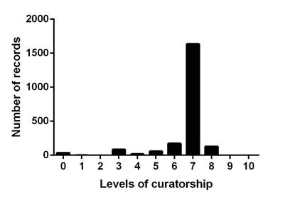 The general collection health index revealed a curatorial level of 71.06 %, with the largest number of records (1633) being in level 7 (Figure 2).