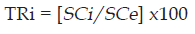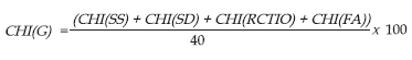 where CHI(SS)=Health index of the collection with respect to the state of the specimen, SS=Values of each individual obtained by the Category 1: State of the specimen, and TS=Total of specimens in the collection.