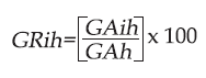 where RGih=Geographic representativeness, GAih=Number of geographic areas represented in the collection, and GAh=Number of total geographic areas for Colombia.