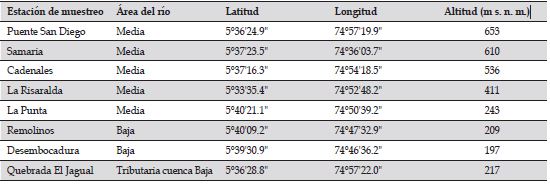 Como artes de pesca se emplearon un equipo de pesca eléctrica (excepto en la cuenca baja), dos atarrayas con diferentes diámetros de ojo de malla (2.5 cm en la cuenca media y 5 cm en la cuenca baja) y una red de arrastre (chinchorro) de 4 m de longitud, 1.50 m de alto y 0.3 cm de ojo de malla. Para estandarizar las capturas, se recorrieron 50 m de longitud aguas arriba en cada estación de muestreo, barriendo una de las orillas del cauce. La intensidad del muestreo fue de 20 minutos para la electropesca y el chinchorro, mientras que para la atarraya se realizaron 20 lances por punto de muestreo.