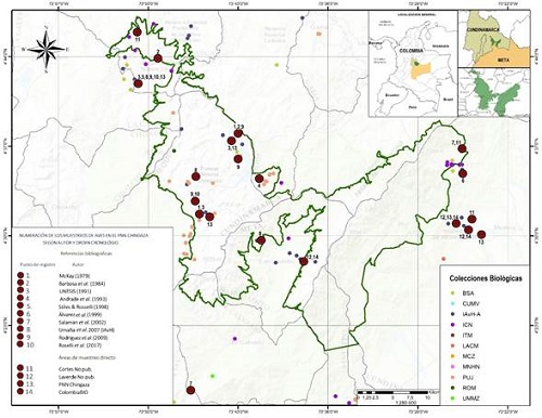 Descripción. El conjunto de datos proviene de bosques andinos y páramo del sector occidental, principalmente dentro del área protegida del PNN Chingaza. En el sector oriental las recientes exploraciones han estado más concentradas en la zona de amortiguación (Figura 1).