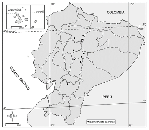 Hasta la fecha, cuatro especies de Gamochaeta [G. americana (Mill.) Wedd., G. purpurea (L.) Cabrera, G. pensylvanica (Willd.) Cabrera, G. sphacelata (Kunth) Cabrera] fueron citadas para Ecuador, y otras dos [G. filaginea (DC.) Cabrera, G. humilis Wedd.] fueron reportadas como dudosas (Jørgensen & León-Yánez, 1999; Luteyn, 1999; Pruski 2018).