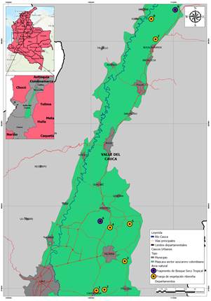 Según Gliessman (2002), un agropaisaje como el del valle del río Cauca tiene tres componentes básicos: 1) áreas de producción agrícola (cultivo de caña de azúcar), 2) áreas naturales (fragmentos de BST y franjas de vegetación ribereñas protectoras de cuerpos de agua) y 3) áreas de influencia humana (infraestructura humana y vegetación arbórea remanente, combinada con plantas ornamentales). Este estudio se enfoca en las áreas naturales cercanas a los cultivos de caña de azúcar.