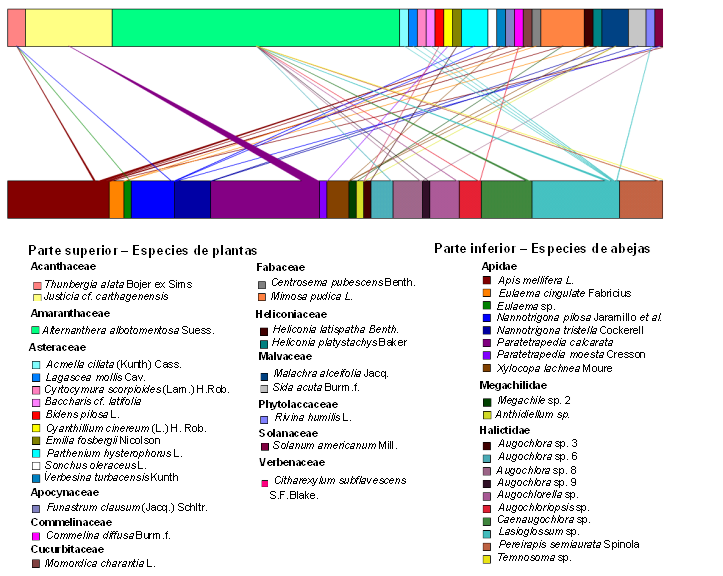 Para entender las relaciones entre las abejas y las plantas que visitaron se realizó una representación gráfica de sus redes de interacción mediante el programa Food Web Designer 3.0 (Sint & Traugott, 2016).