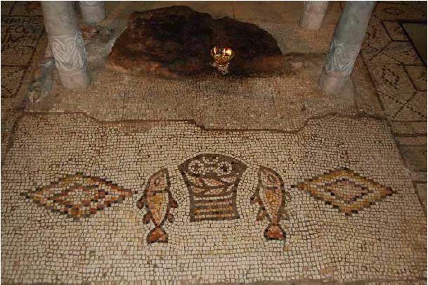Actualmente, en este lugar existe una iglesia bizantina construida donde se conmemora el milagro y que conserva una piedra, que podría ser la descrita por Egeria, y un mosaico bizantino del s. VI alusivo al milagro (Figura 2).