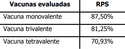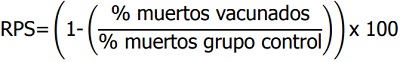 Una vez transcurridos los 24 días post-infección se prosiguió con el sacrificio de los peces supervivientes. A partir de las mortalidades derivadas de la infección por cohabitación (Fig. 2), se calcularon los RPS de los tres grupos vacunados. Los resultados se pueden apreciar en la Tabla 4.