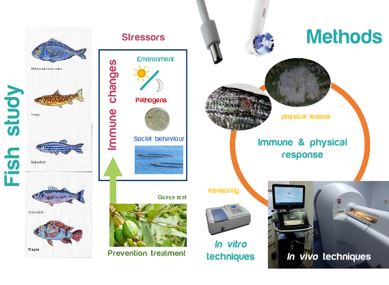 La acuicultura es probablemente el sector de más rápido crecimiento en la industria alimentaria, produciendo más del 50% del pescado destinado a la alimentación humana en todo el mundo. Sin embargo, para satisfacer esta demanda, los peces son criados en sistemas intensivos, donde están expuestos a situaciones de estrés, favoreciendo la aparición de enfermedades que se manifiestan principalmente en la piel.