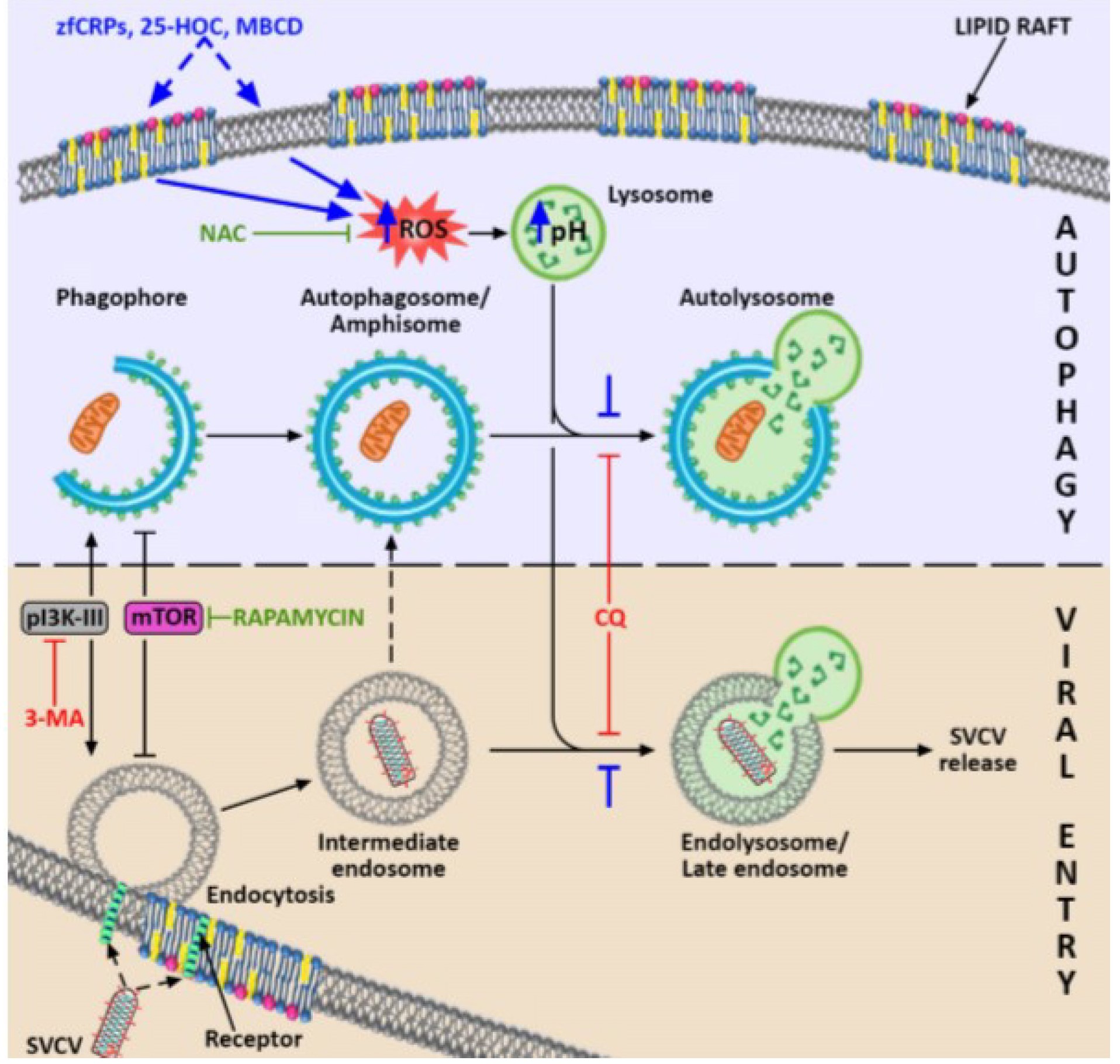 Bello-Perez, M., Pereiro, P., Coll, J., Novoa, B., Perez, L., Falco, A. (2020). Zebrafish C-reactive protein isoforms inhibit SVCV replication by blocking autophagy through interactions with cell membrane colesterol. Scientific Reports, 10(1): 566. DOI: 10.1038/s41598-020-57501-0