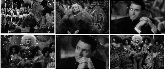 A partir de filmes populares, a teórica Tania Modleski (1999) também analisa a intersecção de gênero e raça na representação das mulheres negras como lócus para onde se direcionam os medos e as ansiedades da sociedade branca. Utilizando uma cena do filme A Vênus loira (Josef von Sternberg, 1932), na qual a protagonista Helen (interpretada pela atriz Marlene Dietrich) apresenta o número musical “Hot Voodoo” travestida de macaco, acompanhada por um grupo de mulheres de blackface com figurino e acessórios africanos (máscaras e lanças) em um cenário de selva (Figura 1), a autora argumenta que o racismo no filme não é incidente, já que tal sequência associa-se às personagens femininas negras (uma empregada [não identificada] e Cora, a dona de pensão vivida pela atriz Hattie McDaniel) presentes nos “locais exóticos” que a protagonista visita em sua viagem de fuga até Orleans, no estado de Louisiana (Figura 2).