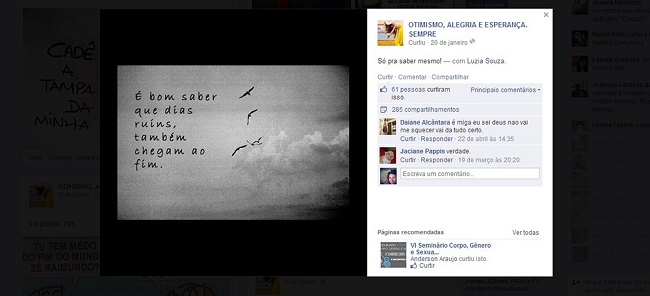 Ao analisarmos trechos do poema e dos posts compartilhados na referida rede social por essas páginas impessoais, identificamos uma recorrência de materiais que convergem para o tema da “confiança no tempo”, que é também um traço do discurso do otimismo e da memória coletiva em diversas religiões.