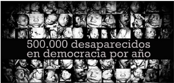 Por su parte, y del mismo modo que con el significante político del Nunca Más, los grupos de activistas pro-vida operan en las redes sociales de Internet con imágenes mediante las que intentan comparar y establecer similitudes entre los desaparecidos del pasado dictatorial y los “crímenes” de niños inocentes en democracia por aborto. Para ello, recurren a la elaboración y diseño de imágenes de niños abortados a los que se los pone en comparación con los desaparecidos de la dictadura. Esto mismo, con el objetivo de despertar y provocar sensibilidades, a la vez que disputar la opinión pública acerca de la legalización del aborto en Argentina. La siguiente imagen pertenece a la red social pro-vida “Dejame nacer”. La misma ha sido publicada un 24 de Marzo, fecha en la que se conmemora en Argentina el Día Nacional de la Memoria por la Verdad y la Justicia en alusión a las muertes suscitadas por el terrorismo de Estado. La fotografía hace referencias a los niños “desaparecidos en democracia por aborto”. Podemos observar cómo el recurso a imágenes de ecografías de bebés es instrumentada en un claro paralelismo con el uso de fotografías que los familiares de desaparecidos y los organismos de derechos humanos utilizaron para individualizar a las víctimas y denunciar las perpetraciones llevadas a cabo por la dictadura militar: