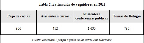 Los datos de las Tomas de Refugio han sido calculados con las referencias proporcionadas por los coordinadores de centros desde la fecha en la que se iniciaron. Los centros más antiguos han manifestado hacer unas veinte al año; si llevan una década funcionando, el cálculo sería de 200 para ese centro. La cifra es muy diferente a la de asistentes al culto, siempre inferior en el caso de centros que funcionan exclusivamente con coordinadores, en los cuales se suele tomar Refugio en otras ciudades o países. De haber podido contabilizar Tomas de Refugio de modo sistemático, hubiera quedado reflejada la trayectoria de una determinada tradición. Los grupos nuevos no han realizado refugios en la mayoría de casos. Este indicador reflejaría un alto grado de compromiso con la comunidad y, en cualquier caso, es más fiable que una simple instantánea del momento. Resulta menos distorsionado que comparar tamaños de grupos de participantes muy activos en unas religiones y que solo son contabilizados a partir de la mayoría de edad, con otros en los cuales es la familia quien ha decidido desde “el momento del nacimiento”, que contabilizarán de por vida en una tradición religiosa que ni siquiera han elegido. En el primer caso (budismo) se radiografía un instante y en el segundo (catolicismo) se cuenta la acumulación de datos de toda una vida, desde el nacimiento.