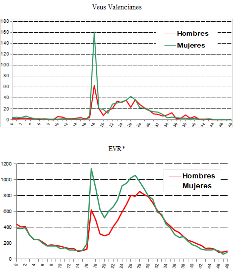 Elaboración propia a partir de la explotación de Veus Valencianes y de la EVR 1988-2013 (INE)