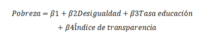 Del modelo econométrico se deriva que un aumento de 1% en la tasa de educación mayor a la primaria reduce en 0.81% la tasa de pobreza. La educación es la variable con mayor impacto en la reducción de la pobreza. La siguiente variable es la de concentración del ingreso. El modelo indica que un aumento de 1% incrementa en casi medio punto porcentual la tasa de pobreza y viceversa. La transparencia es la variable con menor impacto.