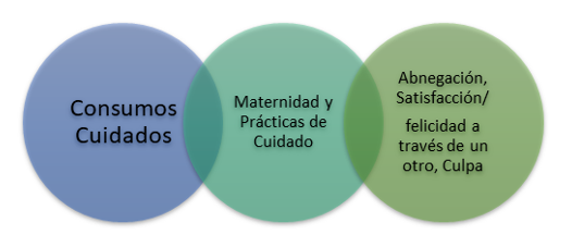 En estas construcciones de la maternidad se han cimentado unas emociones y prácticas, principalmente ligadas al cuidado, con importantes consecuencias en las formas en que se han distribuido estas tareas entre los géneros y los modos en que el Estado ha intervenido en su provisión. De esta forma, la maternidad ha sido asociada a la realización de cuidados para la reproducción y renovación de los grupos sociales. Por cuidados, podemos entender “la gestión y a la generación de recursos para el mantenimiento cotidiano de la vida y la salud; a la provisión diaria de bienestar físico y emocional, que satisfacen las necesidades de las personas a lo largo de todo el ciclo vital” (Arriagada, 2011: 7) asociados a su vez a determinados sentires como la preocupación, la abnegación, la culpa, la felicidad, la responsabilidad, y la protección, de manera que la maternidad conlleva una “disposición a garantizar la vida otra persona“ (Vergara, 2017: 133).