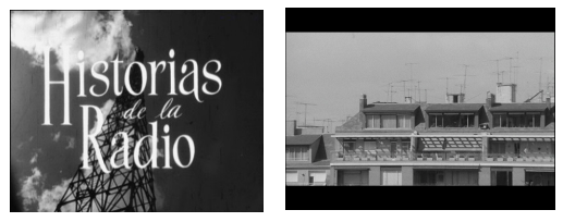 La primera imagen, un contrapicado que altera y agiganta la presencia de la radio; la segunda, en cambio, expresa el valor simbólico e instrumental de las antenas de televisión en los tejados.