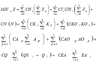 The main purpose of the model is the minimization of the total costs, which is determined by: