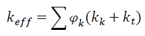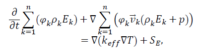 (10)where Ekis the energy of each phase, T is the temperature, SE includes others volumetric heat sources, and keff is the effective thermal conductivity, expressed as follows: