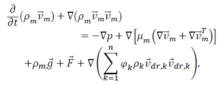 (6)The momentum equation for the mixture is obtained by adding momentum equations for each phase