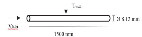 In a subsequent study, Mahbubul et al. [18] investigated the thermophysical properties, pressure drop and heat transfer of 30 nm Al.O. nanoparticles suspended in the R-134a refrigerant. Nanoparticle concentration varied from 1 vf% to 5 vf% [17]. The pipe used for analysis was 8. 12 mm of diameter and 1500 mm of length. Entry conditions were 706 kPa, 300 K, uniform mass flux of 100 kg/m.s, 5 m/s of velocity and a uniform wall heat flow rate of 5000 W/m.. In the research presented in this paper, these data were taken as a reference for the analysis of different nanorefrigerants, but using a constant wall temperature of 330 K and a temperature of 298.15 K at the inlet of the pipe.