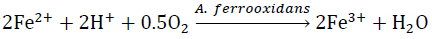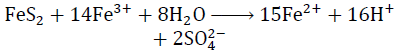 [Ecuation 7]The subsequent pH decrease indicated that the acid production came from pyrite oxidation by eq. (2) and Fe3+ hydroxylation by eq. (4)-(6)[18], which produced more H. after the lag phase. Therefore, assays using the two highest concentrations have a better pH decreasing, because they had a higher iron concentration in the culture medium. Since the coal did not present common alkalinizing compounds such as carbonates [3, 4, 10], it did not have a significant participation on pH changes around the process.
