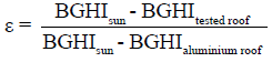 [Ecuation 3]Classification of materials used in the roofs or their designs was performed by effectiveness (), which may be defined in relation to the BGHI [18, 3, 28, 11] by eq. 4.