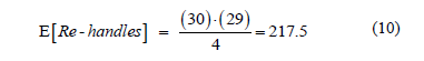 Assuming an equal occurrence probability for each permutation, the expected value of the number of re-handles can be obtained by the weighted average as follows: