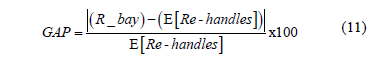 Considering the solution provided by the algorithm, we determined the number of re-handles per bay (R_bay) and compared this number to the upper bound that can be defined as the expected number of re-handles, as shown in the following equation: