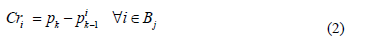 A Cridifference should be computed between the loading sequence of the incoming container and the loading sequence of the last container assigned to each opened bay in the sub-block. We are interested only in negative values of Cri because they indicate that no re-handles will be required if the incoming container is allocated in bayi. The value of Cri is restricted to a maximum tolerable value, defined as Crmax. If the value of Cri is greater to or equal than Crmax, the container can be located in bay i.