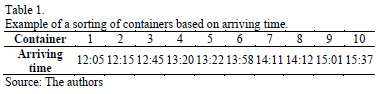 As can be observed in Table 5, a value of Cr = -1 implies that the containers have consecutive values of pk, and in general, a negative value indicates that no re-handles are required to retrieve the pair of containers. The decision to open a new bay must be taken only when all the Cri differences are positive or there is no longer a negative Cr greater or equal than Crmax for all opened bays in the block.