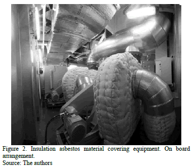 In compliance with MSC/Circ.1045 [5], which was dated on May 28th, 2002, ships belonging to group I should implement in their Safety Management System (developed in compliance with the ISM Code) a maintenance and control of ACMs program on board in order to minimize the exposure to asbestos of any person on board (passengers, crew, port stevedores, surveyors, etc.) while the vessel is "in service". The shipping company must identify and locate the presence of ACMs on board and make an assessment of their condition. This assessment is to be completed using an evaluation checklist shown in Circular Appendix 1 in Annex 1. This includes the materials accessibility, their protection characteristics, their degree of degradation, their exposure to shocks and vibration, and the presence of air currents in the area. Then, using Appendix 2 in Annex 1, a diagnosis of the conservation state of these materials shall be drawn up. Based on this diagnosis, the materials will be subject to a periodic check of the conservation state, to a monitoring of asbestos dust levels in the surrounding area, and to on board protection, repairing, or removal works.