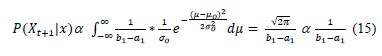 The predictive distribution is the integral of the Uniform distribution of the data and the posterior TN (14). This distribution is uniform (15) and is used for forecasting, after updating the means, with the posterior distribution for every time t.