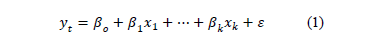 The general equation of a linear model is the same in a Bayesian regression, but the estimation process is different. We describe this process here based on the general equation given by eq. (1), where y.is the demand vector, and x1, …, xk are the explanatory variables.